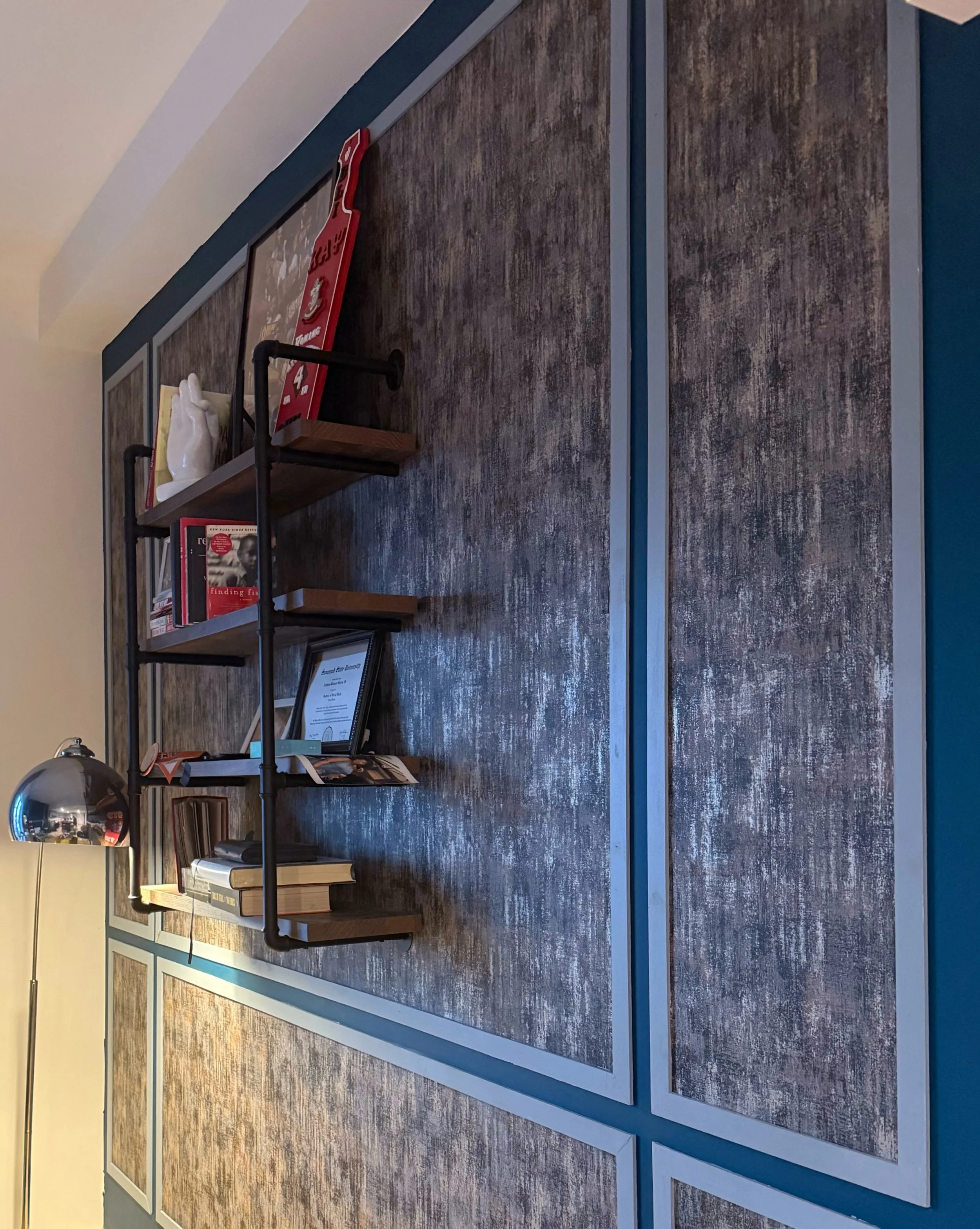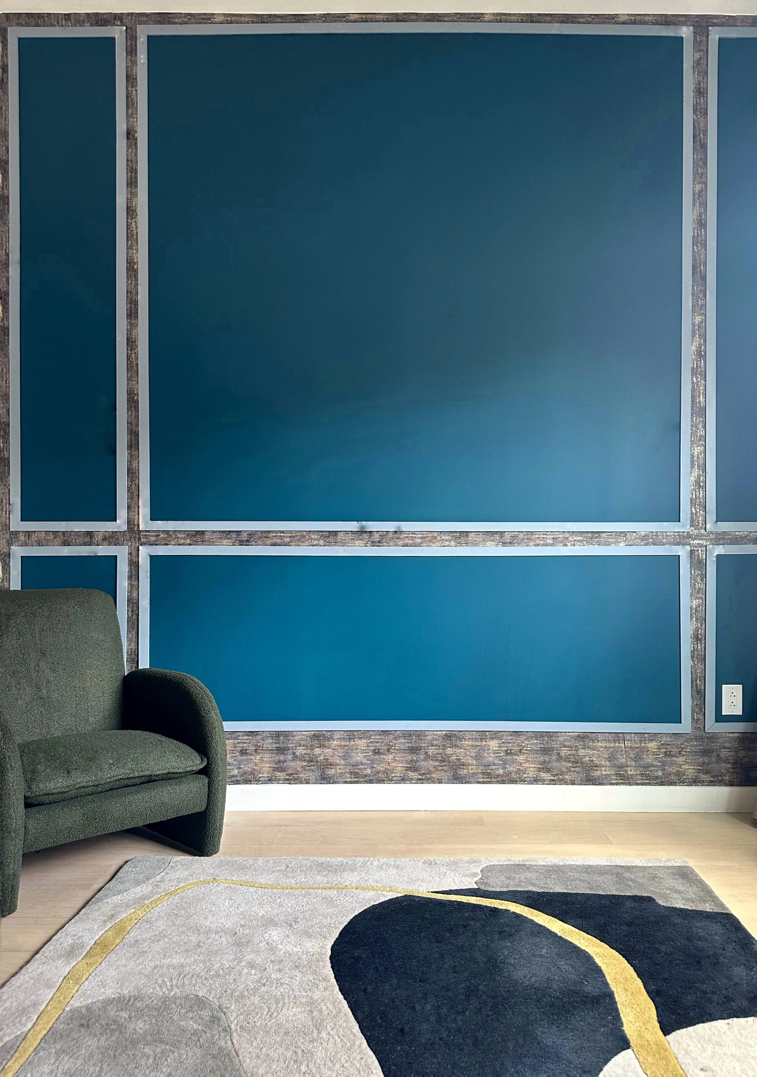 The Challenge: Anthony had recently acquired a new apartment and wanted a design that would elevate his brand content, host guests comfortably, and give him grounding after long busy work days in Manhattan. He also had a desire to keep some items he already had purchased in green but loved the color “Bayberry Blue” by Gliden.